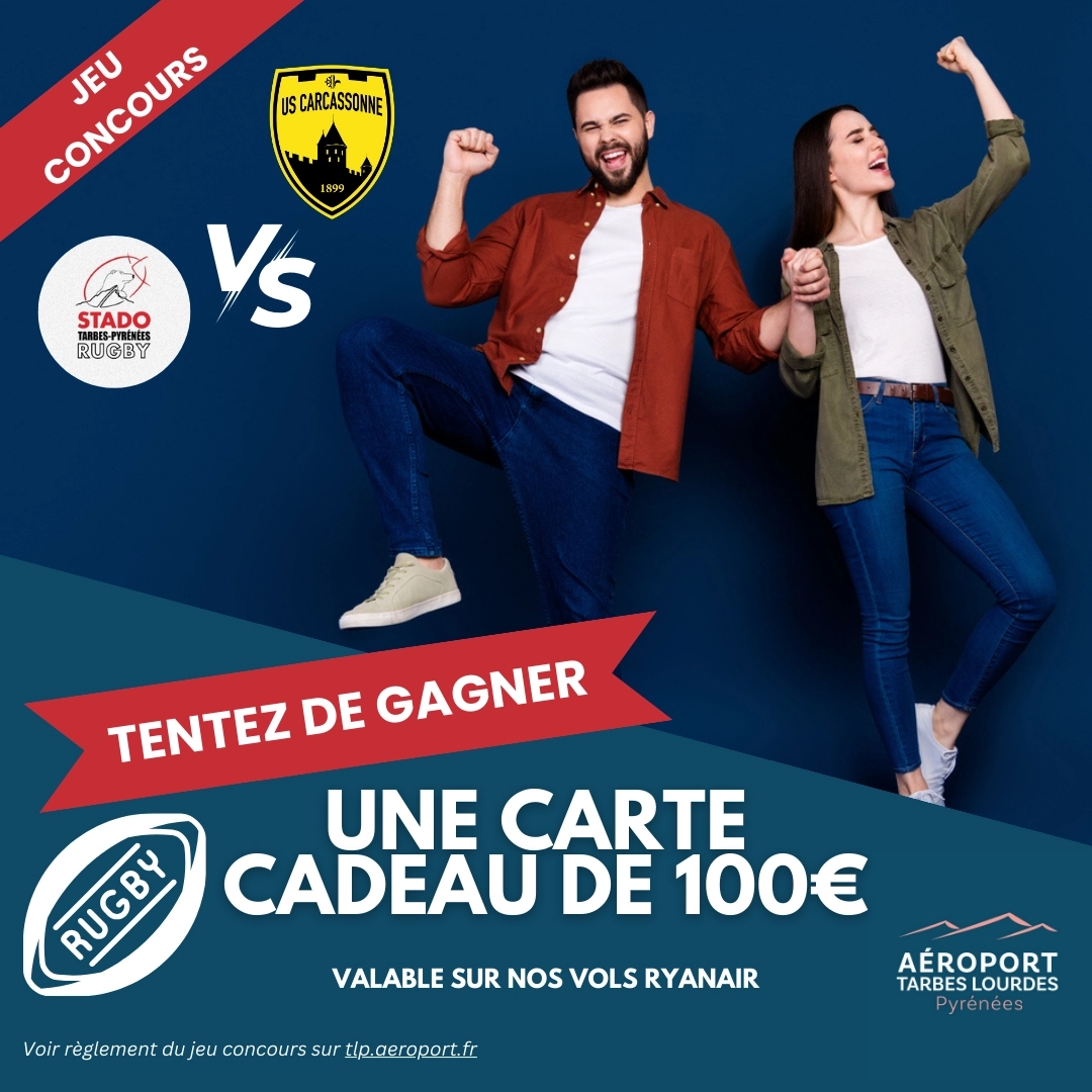 publié le :✈ L'aéroport Tarbes Lourdes Pyrénées organise un jeu concours pour le match Stado TPR - US CARCASSONNE